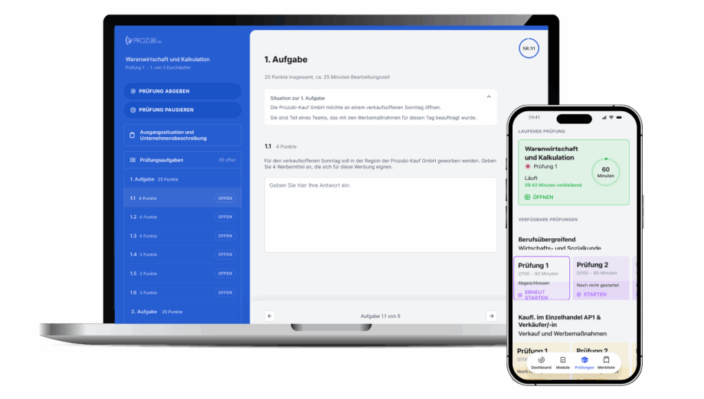 Zusätzlich arbeiten wir aktuell an Prüfungssimulationen für weitere Berufe. Für Industriekaufleute (Demo bereits verfügbar) und Kaufleute im E-Commerce werden unsere Prüfungssimulationen ab Januar verfügbar sein.